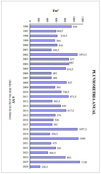 - Gràfica de pluges des de l’any 1996